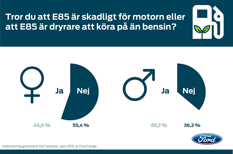 Ford har undersökt svenskarnas kunskaper om E85. Många, framför allt män, tror fortfarande på de gamla myterna.