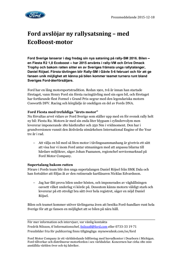 Fredrik Nilsson, tf Informationschef, fnilsso8@ford.com eller 0733-33 19 71