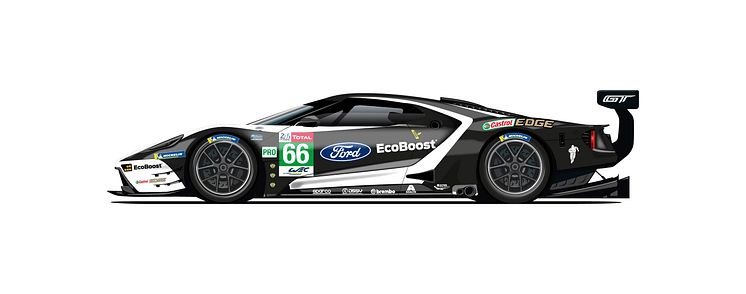 Ford GT #66, som körs av Stefan Mücke (Tyskland), Olivier Pla (Frankrike) och Billy Johnson (USA) har försetts med en svart exteriör som tar tankarna tillbaka till Ford GT40 som Bruce McLaren och Chris Amon vann Le Mans med 1966.
