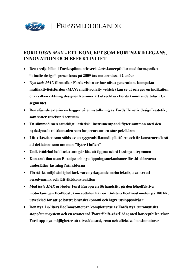 FORD IOSIS MAX − ETT KONCEPT SOM FÖRENAR ELEGANS, INNOVATION OCH EFFEKTIVITET