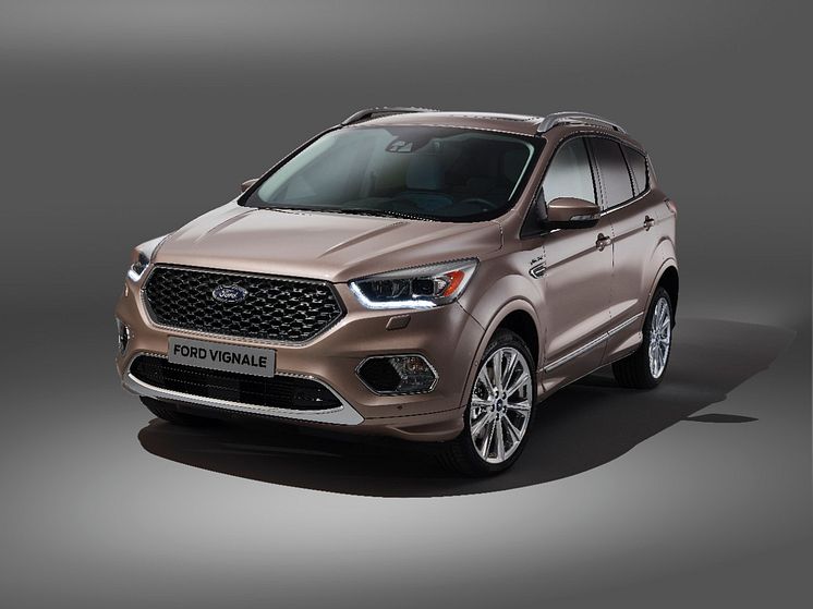 Fords nya Kuga Vignale är baserad på den tidigare mindre Kuga-modellen. Bilen byggs vid Fords anläggning i Valencia med hjälp av den senaste kamera- och laserteknologin tillsammans med förstklassigt hantverk. Den nya större SUV:en har en pärlemorskimrande exteriör, som kompletteras med mörkare partier vid front, hasplåtar och dörrdetaljer. Grillens design utgörs av Vignale-modellernas karaktäristiska hexagonform, som också återkommer som ett mönster i interiörens läder.