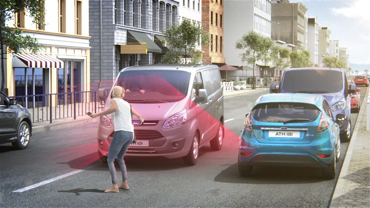 Fords aktiva inbromsnings-teknologi med fotgängaravkänning finns nu tillgänglig för Ford Transit och Ford Transit Custom transportbilar. Teknologin hjälper fordon att upptäcka personer, som därefter kan bromsa automatiskt om föraren inte reagerar på de varningssignaler fordonet sänder ut.