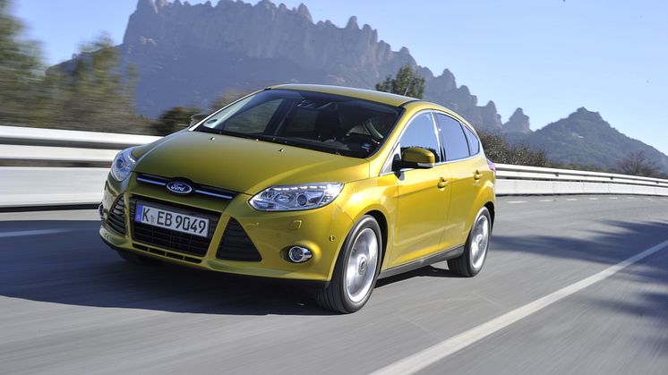De första 100- och 125-hästars Focus-modellerna tillverkas i tyska Saarlouis och har klassens bästa bränsleeffektivitet med en förbrukning på 4,8 l/100 km* och koldioxidutsläpp på endast 109 g/km respektive 5,0 l/100 km och koldioxidutsläpp på 114 g/km.