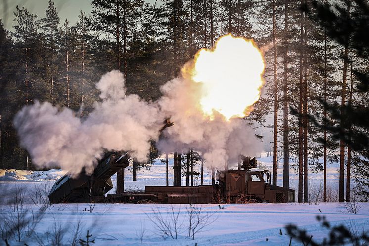 Artillerisystemet Archer avfyras under övning.