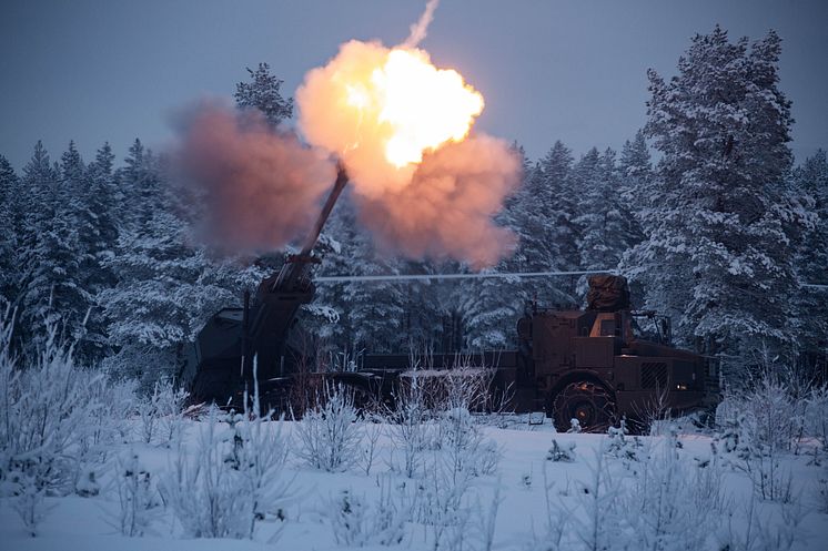 Artillerisystemet Archer avfyras under övning.
