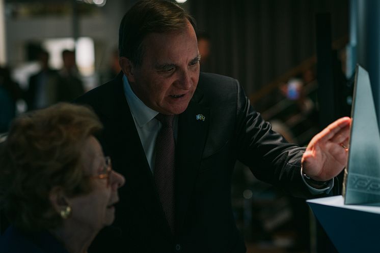 Stefan Löfven, Kate Wacz och prisstatyetten för Per Anger-priset.