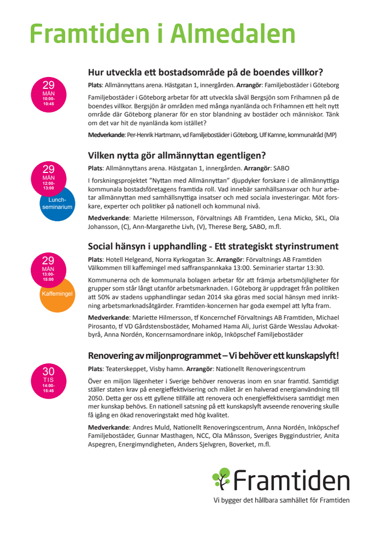 Program för Framtidens aktiviteter i Almedalen 2015