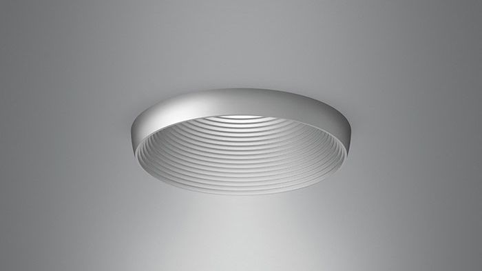 Pelée Downlight har en diamater på 160mm och de invändiga koniska rillorna understryker släktskapet mellan övriga armaturer i serien samtidigt som de ger en tydlig design och ett behagligt ljus.