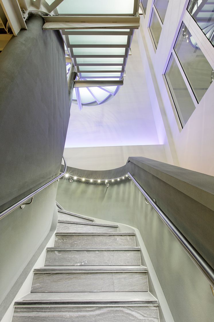 HLS (Handrail Lighting System) gör det möjligt att på egen hand effektivt belysa trappor och andra passager. Här visas bilder från ett spännande trapphus. St Martins Lane, Covent Garden, London. Bild 2.