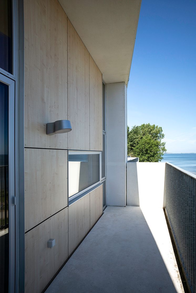 och samlingsutrymmen. På balkongerna sitter väggarmaturen Nyx 190. Vid infart till