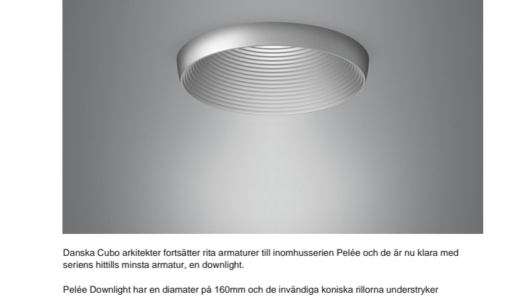 Danska Cubo arkitekter fortsätter rita armaturer till inomhusserien Pelée och de är nu klara med seriens hittills minsta armatur, en downlight.