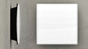 Vägg- och takfäste i gjuten aluminium, lackerad vit eller svart. Avskärmning i akryl för utomhus- eller polykarbonat för inomhusbruk.
