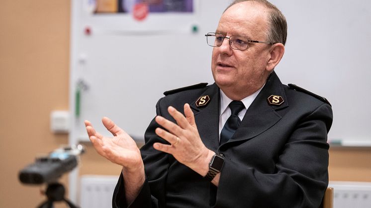 Frälsningsarméns världsledare General André Cox är i Stockholm för att vara huvudtalare vid Frälsningsarméns kongress 21 till 22 april. I anslutning hölls en pressträff idag på högkvarteret.