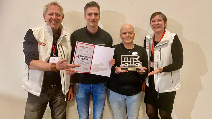 På husbilsmässan ”Frihet på hjul” på Kistamässan den 18-20 mars delade det digitala resemagasinet FREEDOMtravel ut det nyinstiftade priset ”Årets Destination”. Som vinnare av priset 2022 utsågs Destination Glasriket och Destination Kosta i Småland.