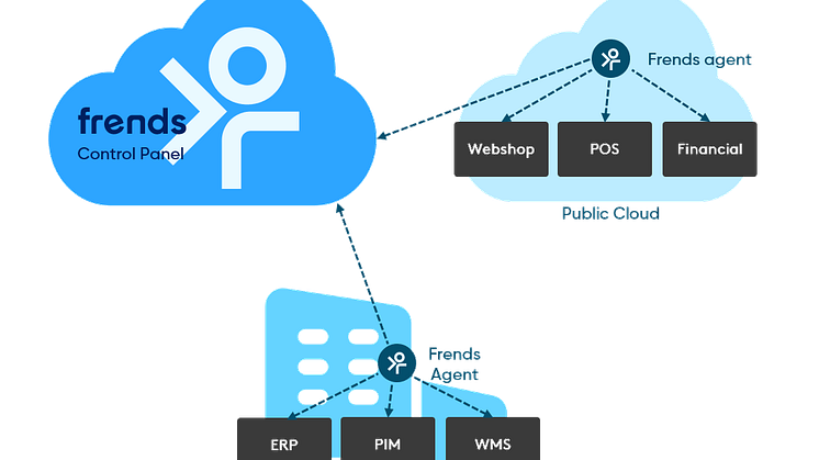 Tokmannis nya strategi är molnorienterad. Därför väljer Tokmanni enbart cloudsystem för nya affärsapplikationer. Som för alla företag av den här storleken så kan inte alla systemen bytas ut på en och samma gång. Därför är Frends förmåga att stödja hybridarkitektur avgörande. Systemen kan ingå i en övergripande processintegration och automatisering lokalt eller i molnet utan att krångla till det så att brandväggen ser ut som en ”Schweizerost”.