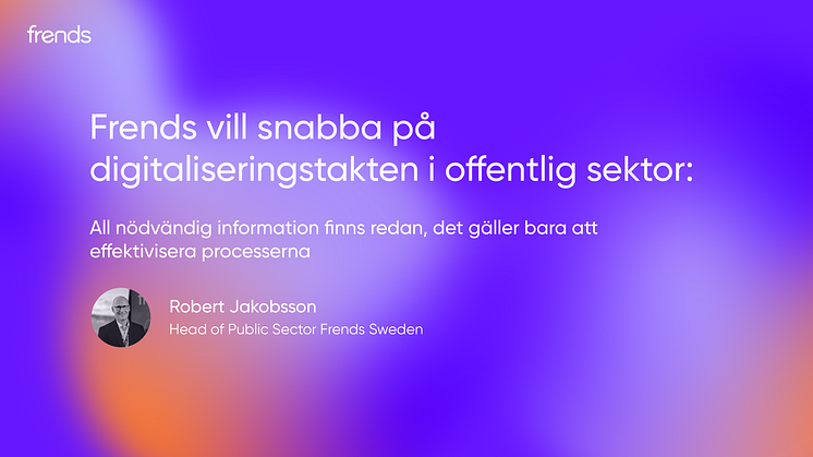 Digitaliseringen av den offentliga sektorn går långsamt i Sverige, vilket innebär att vi riskerar att hamna efter andra länder. För att ta itu med denna utmaning satsar Frends stort på att driva på digitaliseringen av den svenska offentliga sektorn. En nyckelaktör i denna satsning är Robert Jakobsson, som nu tar sig an rollen som Head of Public Sector på Frends Sverige.