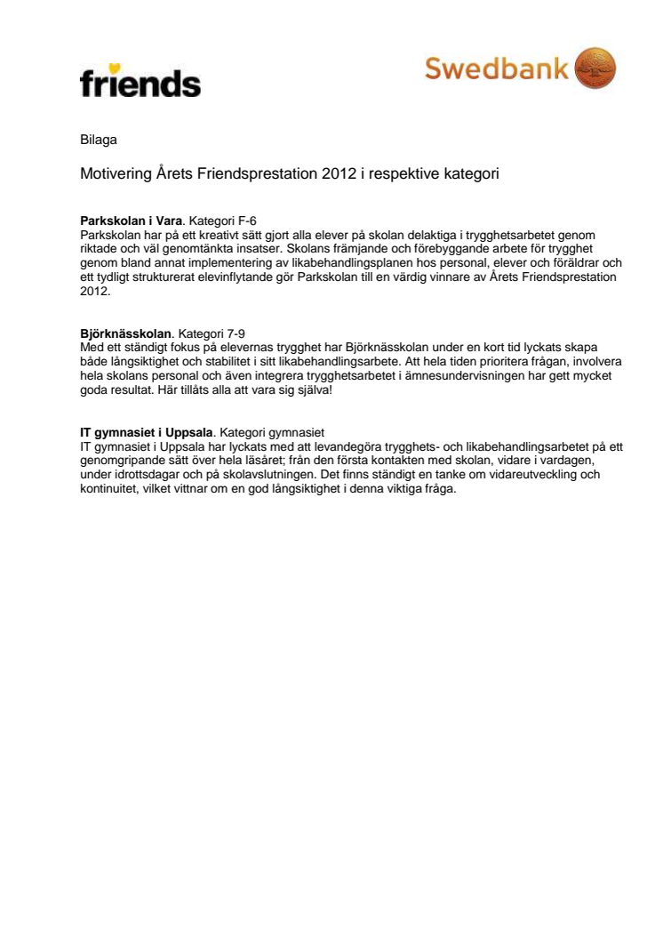 Bilaga - motiveringar till Årets Friendsprestation
