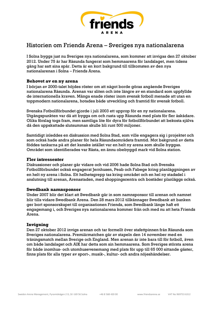 • Storyn om Friends Arena - Sveriges nya nationalarena