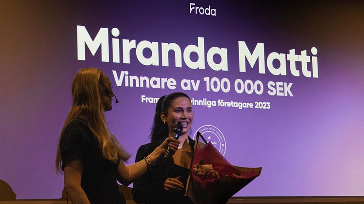 – Stipendiet Framtidens kvinnliga företagare syftar till att öka antalet kvinnliga företagare och förebilder i näringslivet, och ska gå till ett bolag som är i uppstartsfasen. Miranda är en fantastisk förebild och har en tydlig vision med Lexflix som jag tror att vi kommer höra mycket om i framtiden, säger Olle Lundin, vd på Froda.