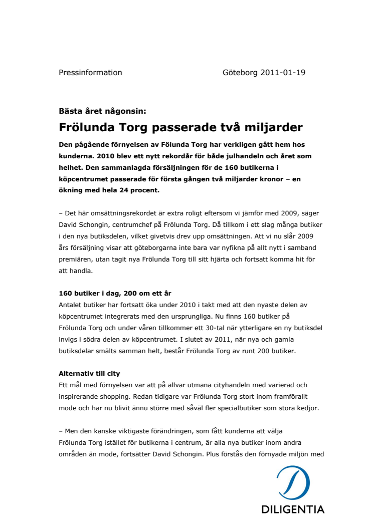 Den pågående förnyelsen av Fölunda Torg har verkligen gått hem hos kunderna. 2010 blev ett nytt rekordår för både julhandeln och året som helhet. Den sammanlagda försäljningen för de 160 butikerna i köpcentrumet passerade för första gången två miljarder kronor – en ökning med hela 24 procent.