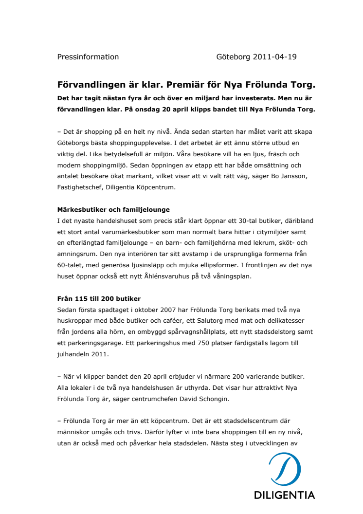 Förvandlingen är klar. Premiär för Nya Frölunda Torg