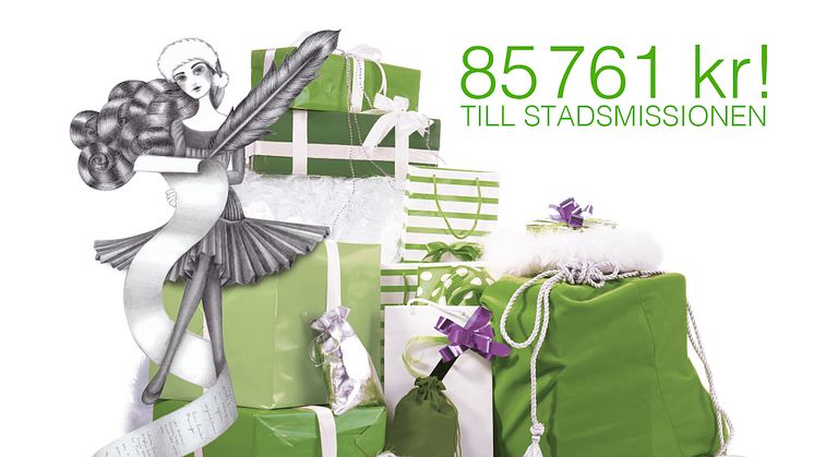 Vi vill tacka alla våra besökare som kom till vår julklappsinslagning i år. För 20 kronor fick alla som ville sina julklappar inslagna och alla pengar gick oavkortat till Stadsmissionens projekt Kollo. Tillsammans samlade vi in hela 85 761 kronor!