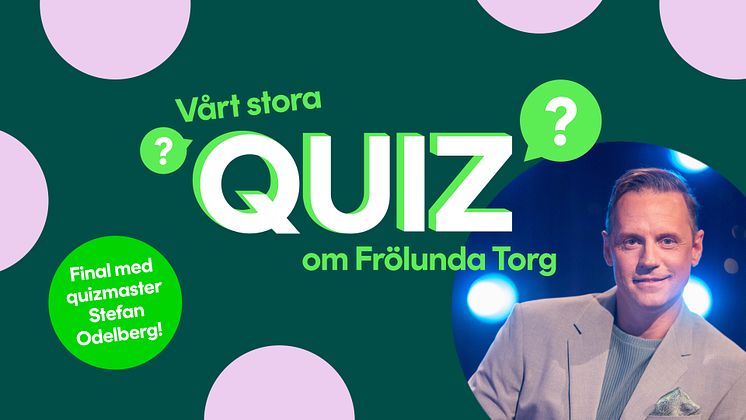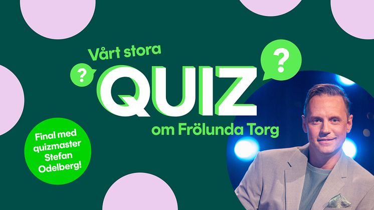 Under sex veckor kommer torgets besökare att kunna delta i ”Vårt stora Quiz om Frölunda Torg” - ett roligt och engagerande digitalt quiz. Lördagen den 27 april kommer en stor final att hållas i köpcentrumet med quizmastern Stefan Odelberg. Här kammar vinnaren hem ett presentkort på Frölunda Torg till ett värde av 30 000 kr.