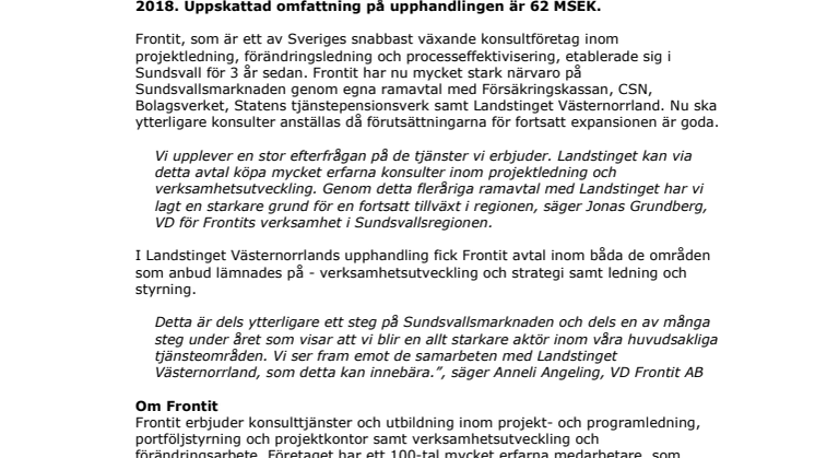 • Frontit tecknar ramavtal med Landstinget Västernorrland