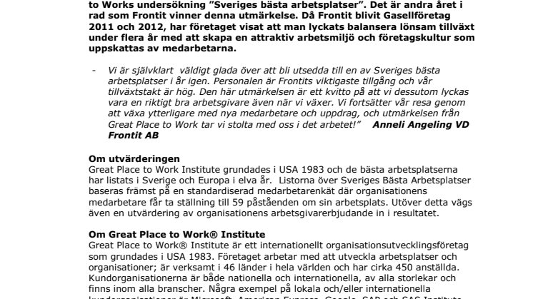 • Frontit återigen utsett till en av Sveriges bästa arbetsplatser!