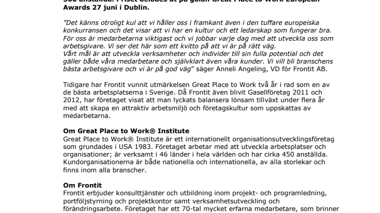 • Frontit utsett till en av Europas bästa arbetsplatser!