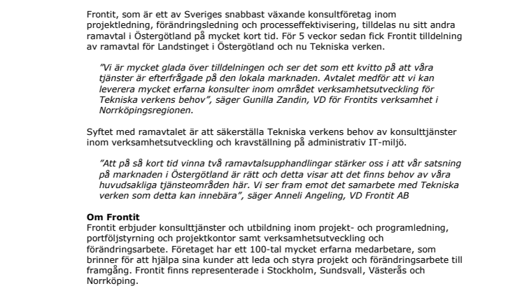 • Frontit tecknar ramavtal med Landstinget i Östergötland