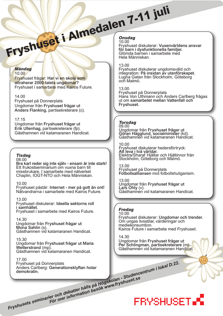 Varför slåss unga människor, prevention eller repression, har vi råd att inte satsa på förebyggande åtgärder, är några frågeställningar som seminariet kommer att diskutera kring. Medverkar gör bl a Länspolismästare Carin Götblad.