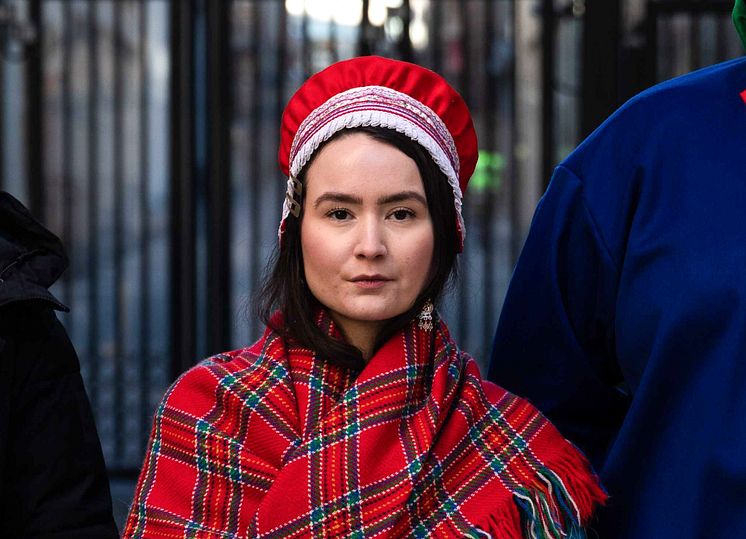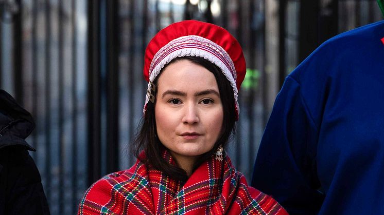 – Jag är 23 år, född och bosatt i Jokkmokk. Sedan 2021 är jag ordförande i det samiska ungdomsförbundet Sáminuorra. Jag blev invald i Sáminuorras styrelse 2018 och utsedd till ordförande 2021, berättar Sara-Elvira Kuhmunen.