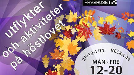 Under höstlovet, 28 oktober-1 november, har unga mellan 10-20 år möjlighet att delta i aktiviteter på Fryshuset i Stockholm. Vi har öppet måndag till fredag mellan 12:00-20:00.