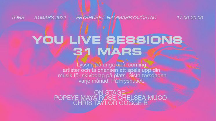 Sista torsdagen varje månad bjuder Fryshuset in musikbranschen till YOU live - en AW på de ungas hemmaplan. För dem som vill få chans att visa upp sin musik och för branschfolk som söker talanger utöver det vanliga.