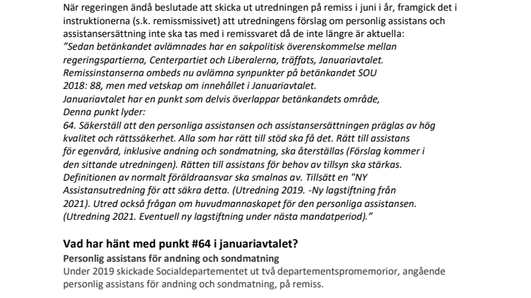 Se också särskild bilaga om personlig assistans. FUB motsätter sig LSS-utredningens samtliga förslag som innebär en inskränkning av rätten till personlig assistans.