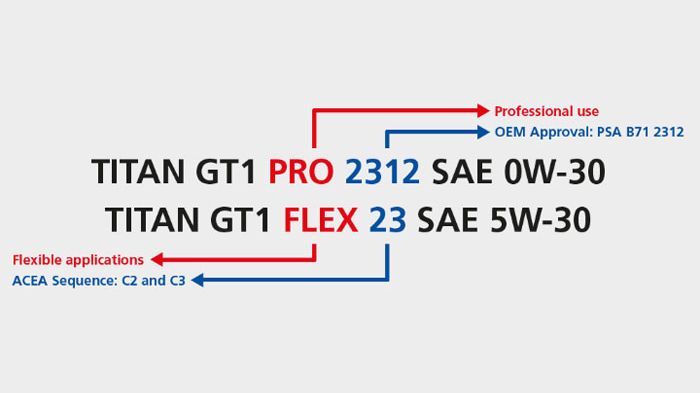 Nu skapar vi en tydligare namnsättning för att du lättare ska kunna välja rätt bland våra motoroljor. TITAN PRO som i professionell och TITAN FLEX som i flexibel. Oavsett om du har behov av en produkt som möter ett specifikt godkännande eller vill kunna täcka in en större del av bilparken hittar du motoroljan hos oss.