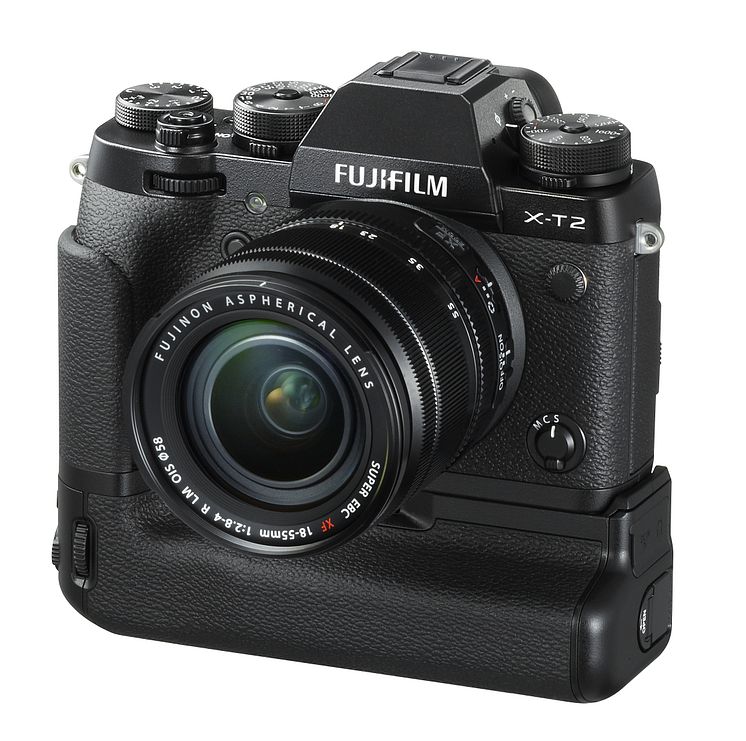 Fotografer som har behov av särskilt hög prestanda kan skaffa det nya batterigreppet Vertical Power Booster Grip VPB-XT2, som rymmer två batterier. Tillsammans med kamerans batteri ökar det kapaciteten till 1000 exponeringar, samtidigt som X-T2 får tillräckligt med extra kraft för att höja den maximala seriehastigheten från 8 till 11 bilder/s. Dessutom reduceras sökarens "blackout"-tid ytterligare samtidigt som inspelningstiden för 4K video förlängs till ca. 30 min. Greppet är byggt i magnesiumlegering, har samma grad av väderskydd som kamerahuset och är försett med reglage som underlättar fotografering i höjdformat (bl.a. avtryck, inmatningshjul och AF-joystick). VPB-XT2 har även utrustats utrustats med hörlurskontakt, en uppskattad finess bland videofotografer. Den medföljande AC-adaptern AC-9VS förvandlar VPB-XT2 till en separat dubbelladdare och kan också användas för att leverera ström till kameran.