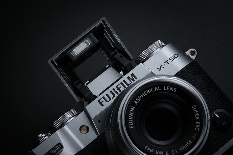 Jämfört med tidigare modell har X-T50 fått en rundare design och förbättrat grepp, dessutom har knapparnas layout på kamerans baksida finjusterats för att möjliggöra effektivare fotografering av både stillbilder och video. X-T50 har precis som förgående modell en uppfällningsbar blixt integrerad i sökaren.