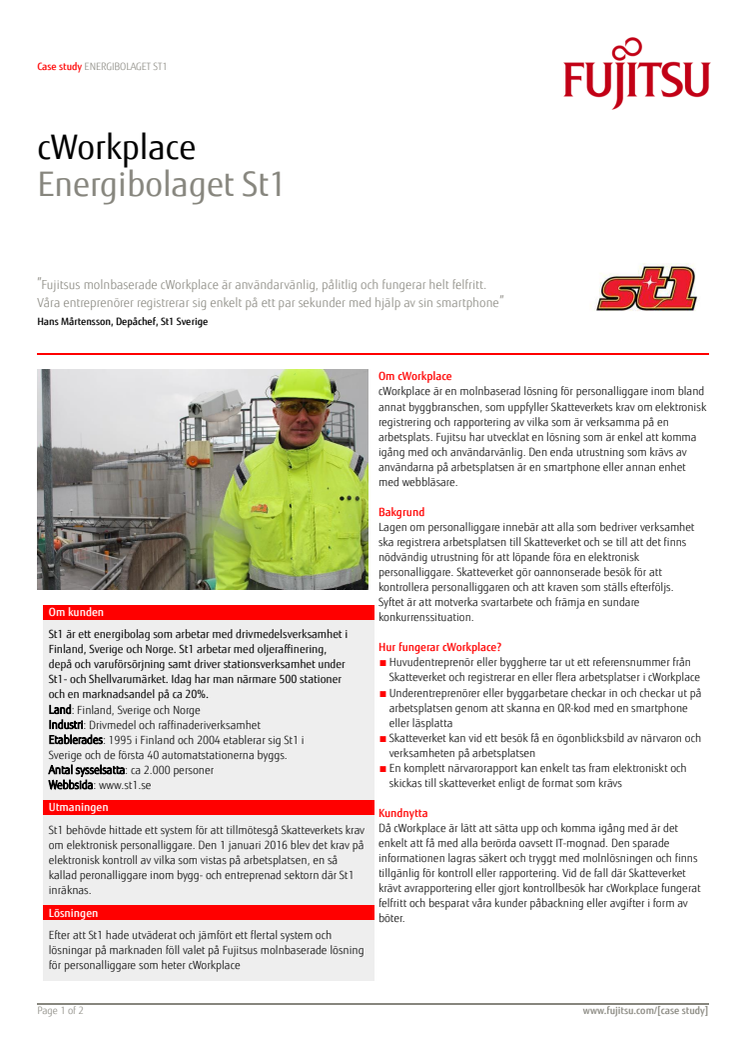 St1 använder Fujitsus molnbaserade lösning för personalliggare
