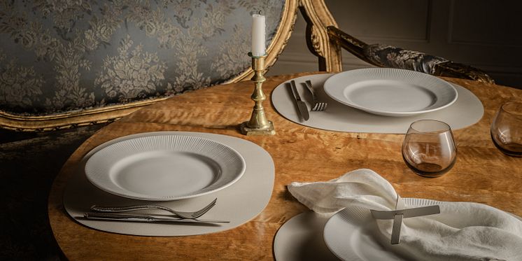 Fyrklövern Dine bordstablett Ouster White, Nordic Dawn Glimt tallrikar