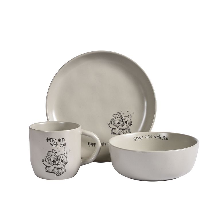 Fyrklövern Stitch & Angel set Happy 3 delar, Grå