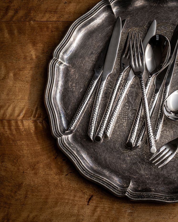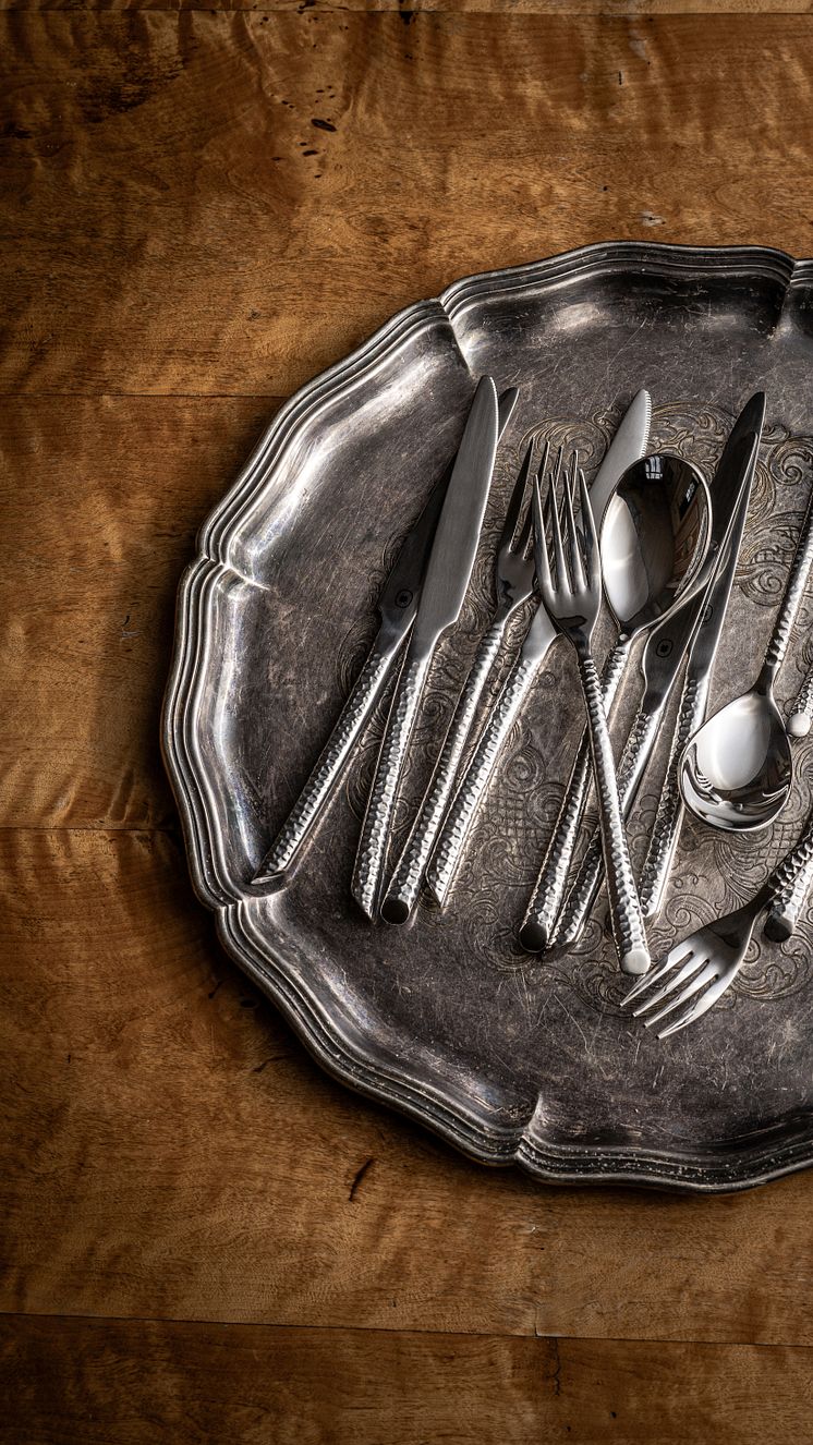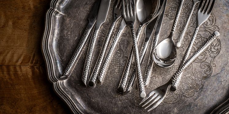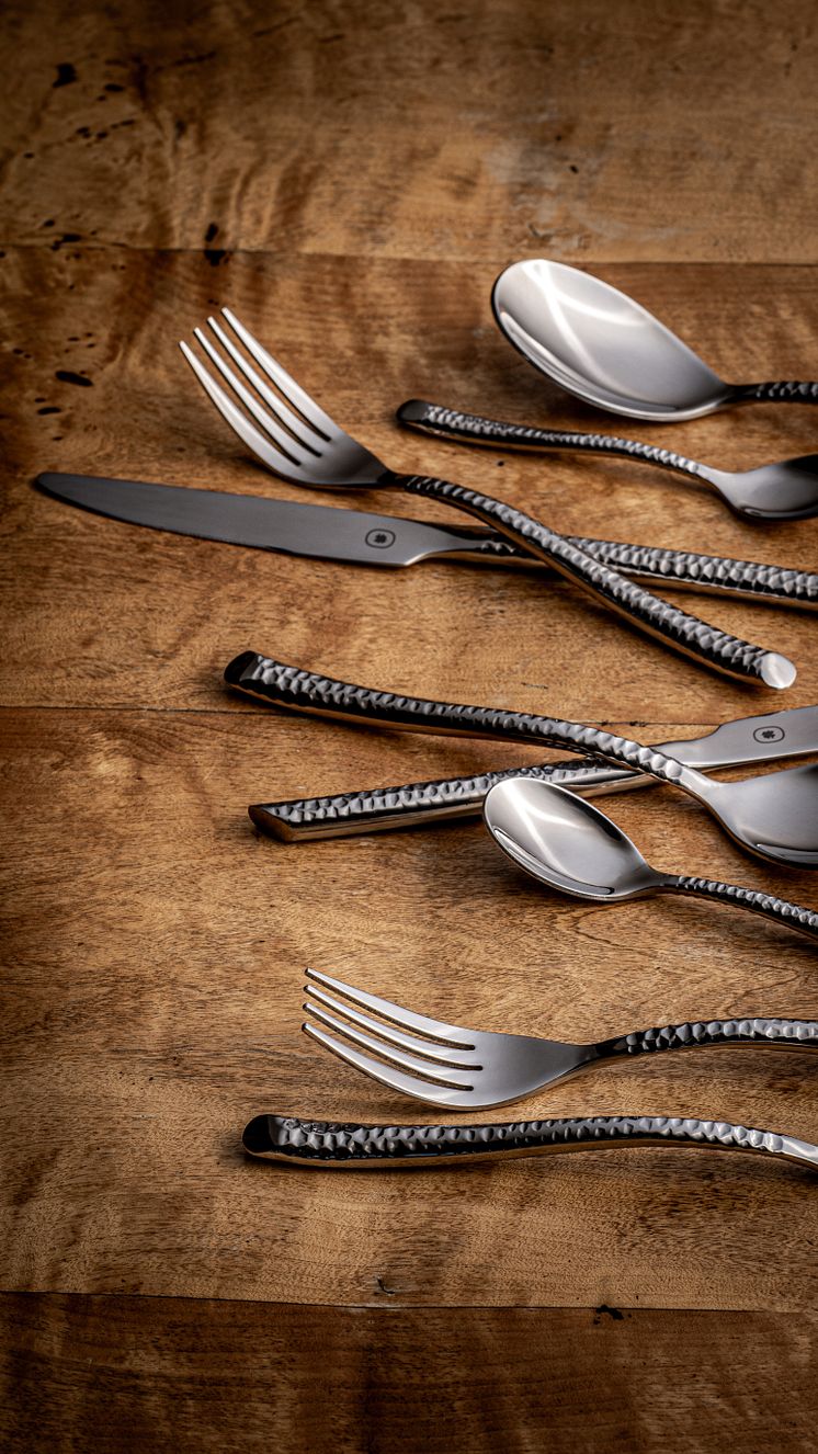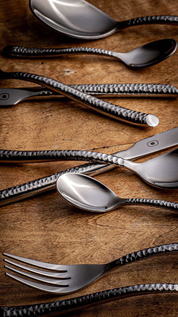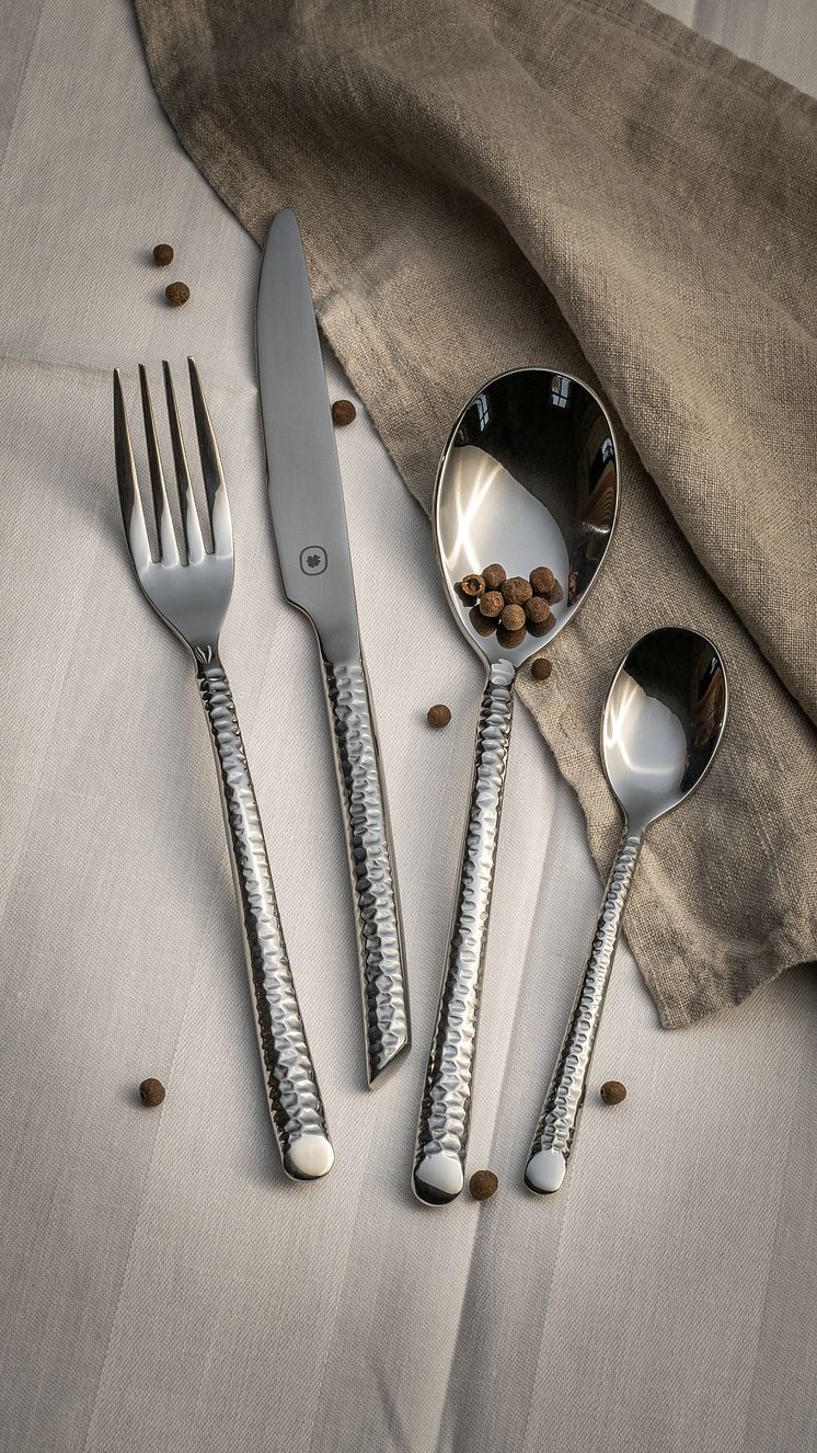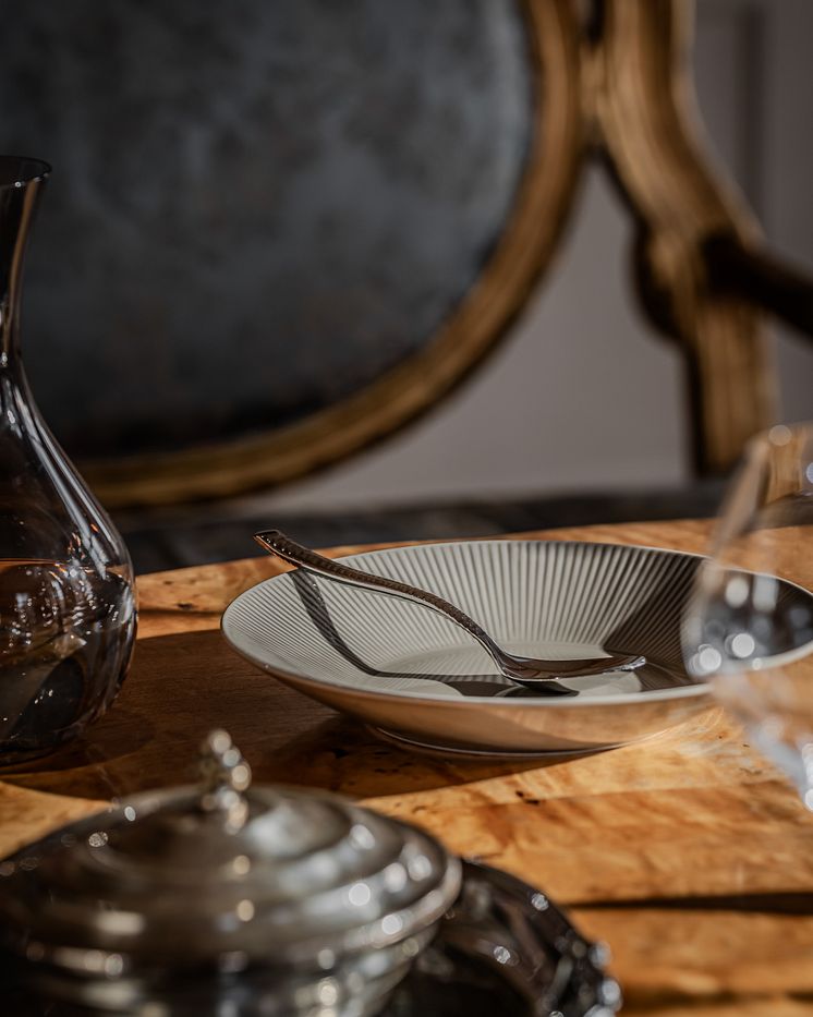 • Fyrklövern Nordic Dawn Bark djup tallrik, Hammer matsked
