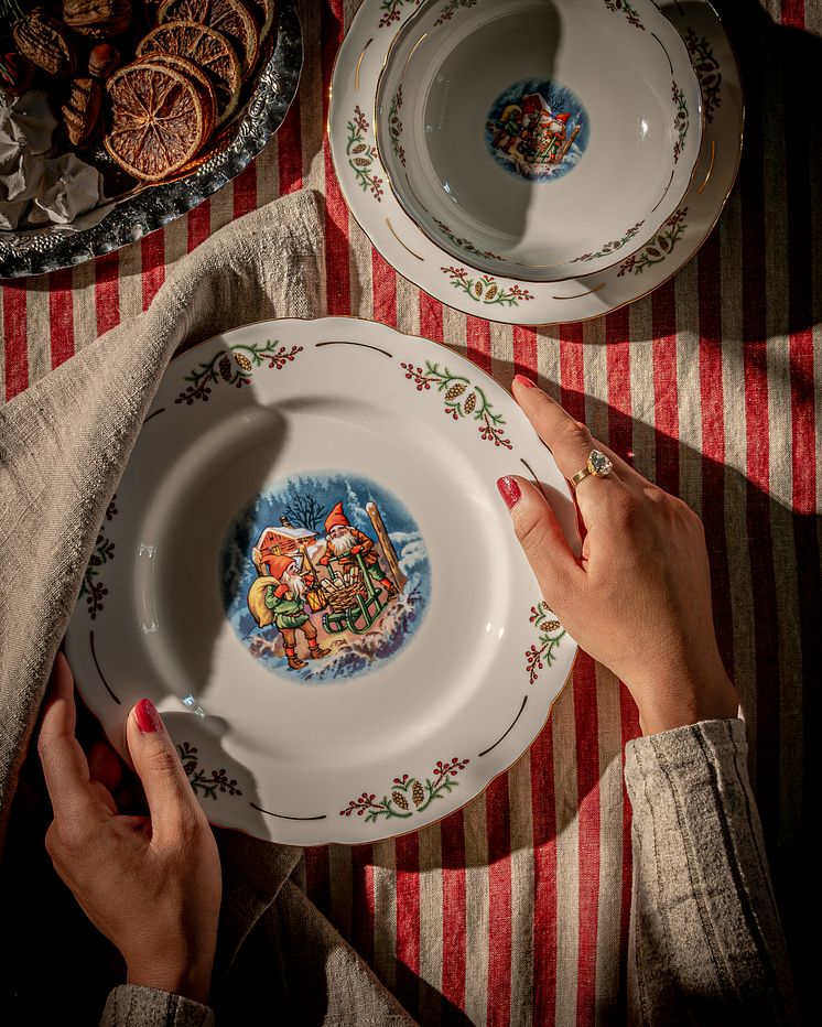 • Fyrklövern Gammaldags Jul mattallrik 26 cm och skål 19 cm