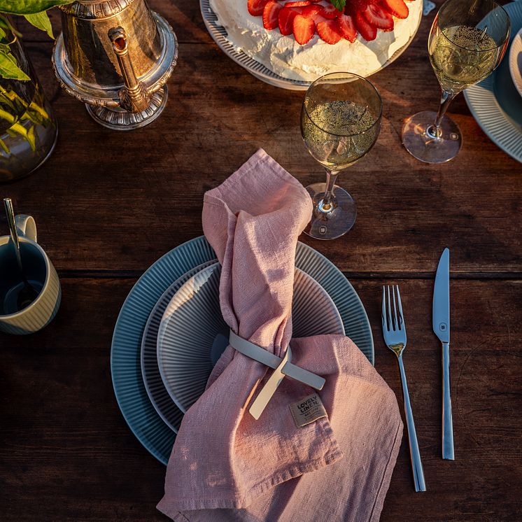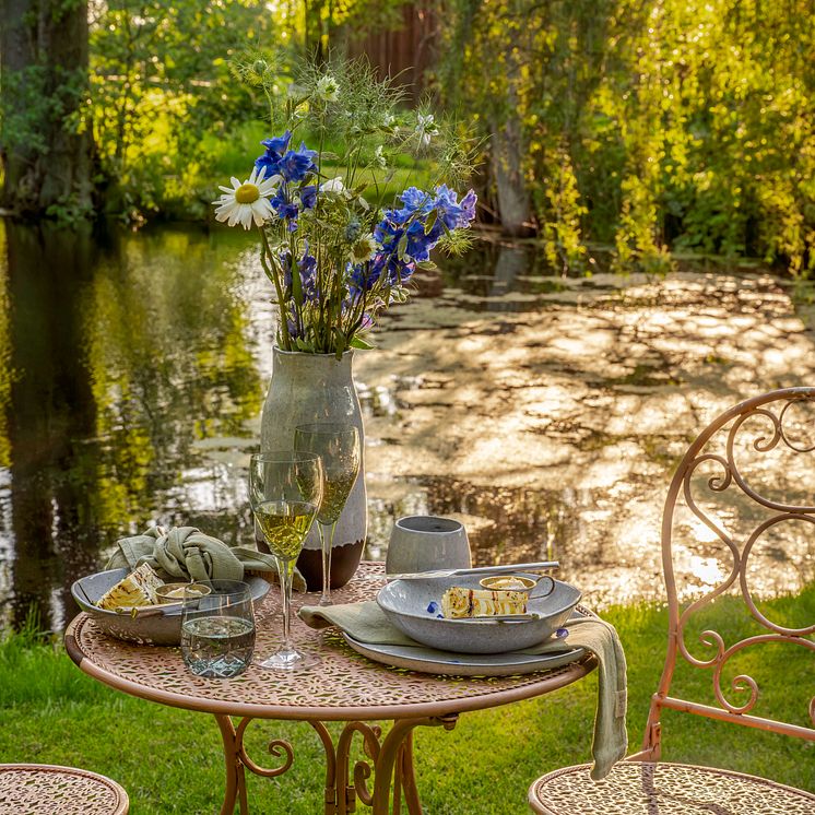 • Fyrklövern Nordic Dawn Bark och Dagg, Crown glas gröna, 2Dine bestick - sommarinspiration