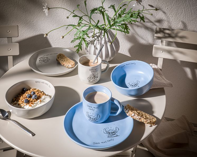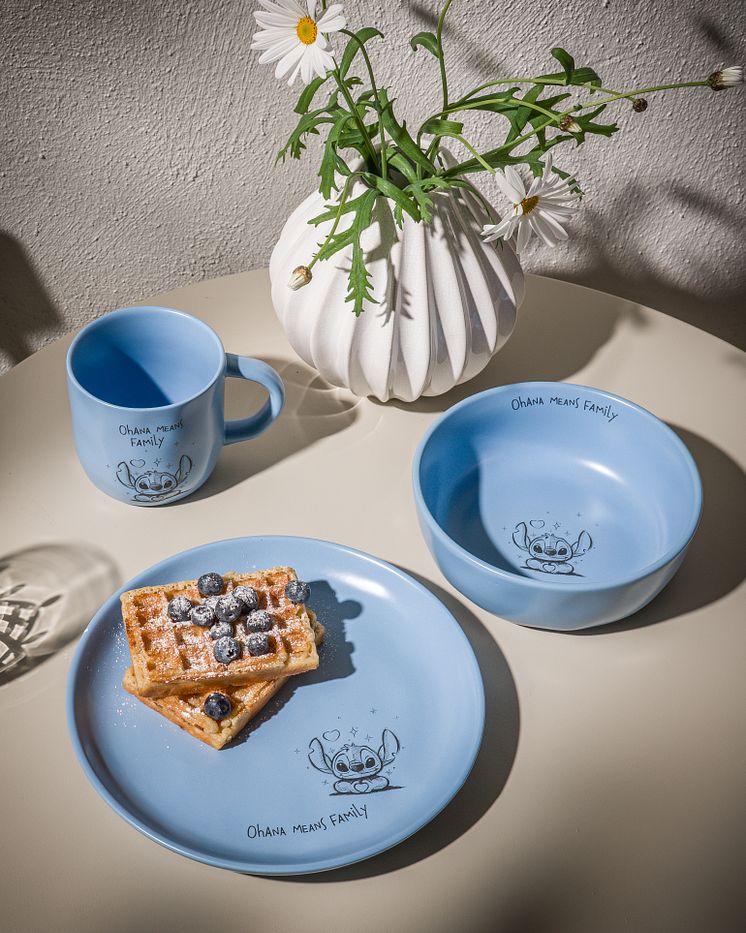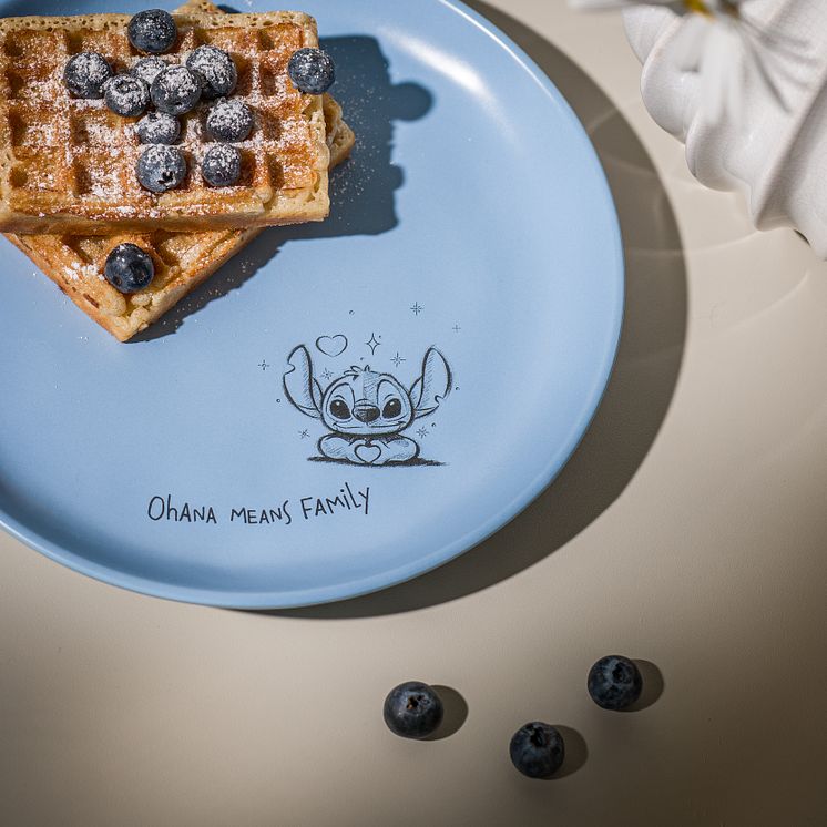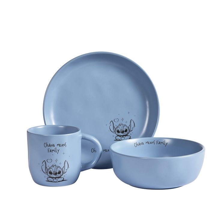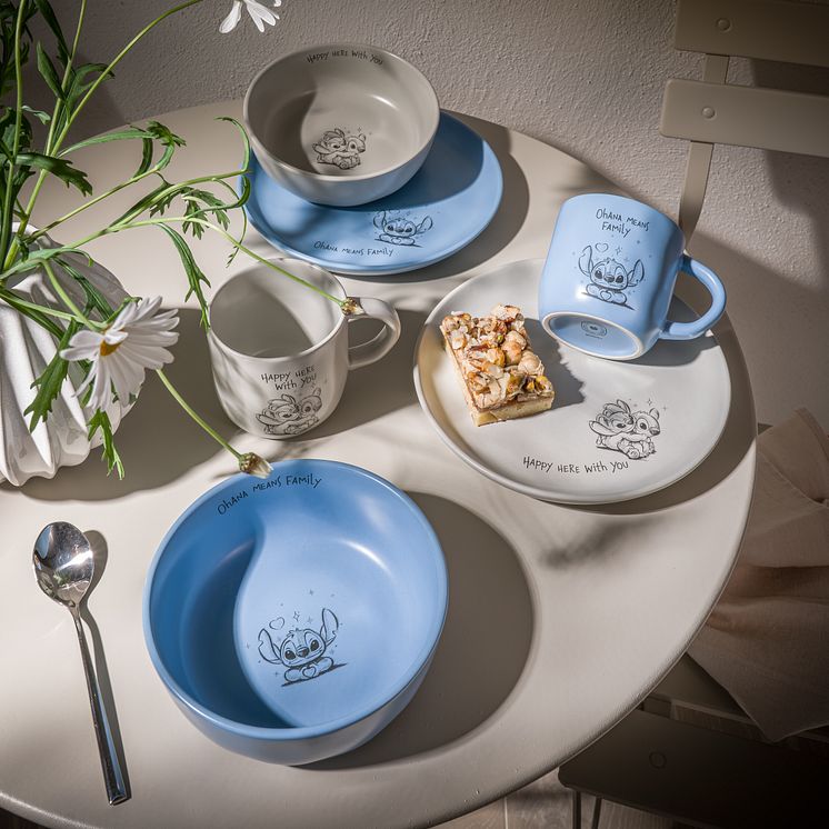 - Ohana-setet i blått lyfter budskapet ”Ohana means family” och visar Stitch göra den ikoniska hjärtgesten – en visuell hyllning till samhörighet, trygghet och kärlek.