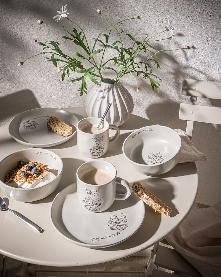 Kollektionen består av två olika set med mugg, skål och assiett i högkvalitativt stengods med sidenmatt glasyr – designade för att både värma hjärtat och sprida glädje vid bordet.