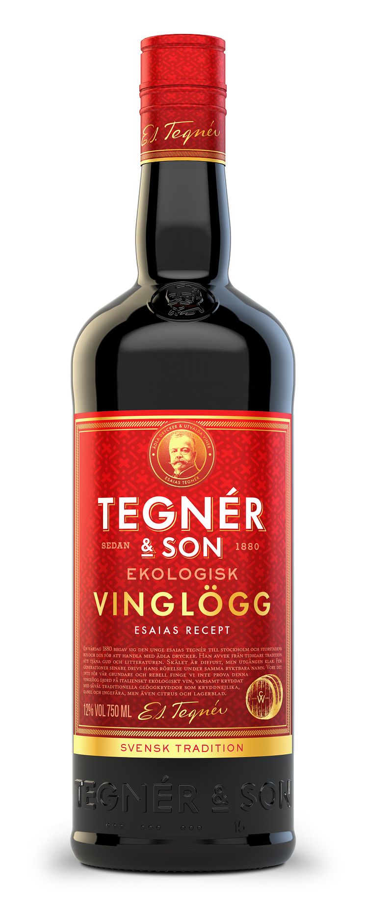 Tegnér & Sons anfader var vin- och sprithandlaren Esaias Tegnér som skapade och sålde sin egen glögg redan under 1800-talet. När den första nya blandningen från Tegnér & Son lanserades år 2011 var det naturligt att hedra hans namn. Esaias recept blandas på fruktiga ekologiska viner från Italien som kryddas med bland annat kanel, kryddnejlika och ingefära. Resultatet är en ren och balanserad vinglögg med toner av mörka körsbär, kryddnejlika och kanel.