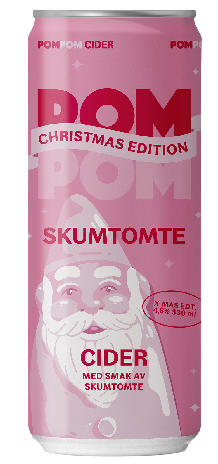 Tidigare års mycket populära cider ”Skumtomte” kommer nu i ny design och nytt slimmat format på burken. POMPOM Skumtomte är en cider i ljusrosa färg, fräsch och frisk i stilen. Serveras väl kyld som aperitif, gärna med en näve frysta lingon eller röda vinbär i glaset istället för is. Läskande päroncider med smak av marshmallow, jordgubb och vanilj.