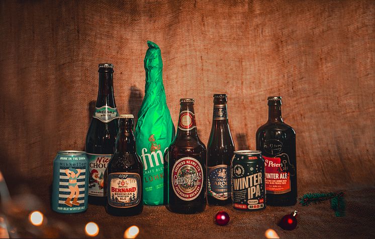 Julkavalkad med klassiska julöl, glögg, cider och snapsar på bordet